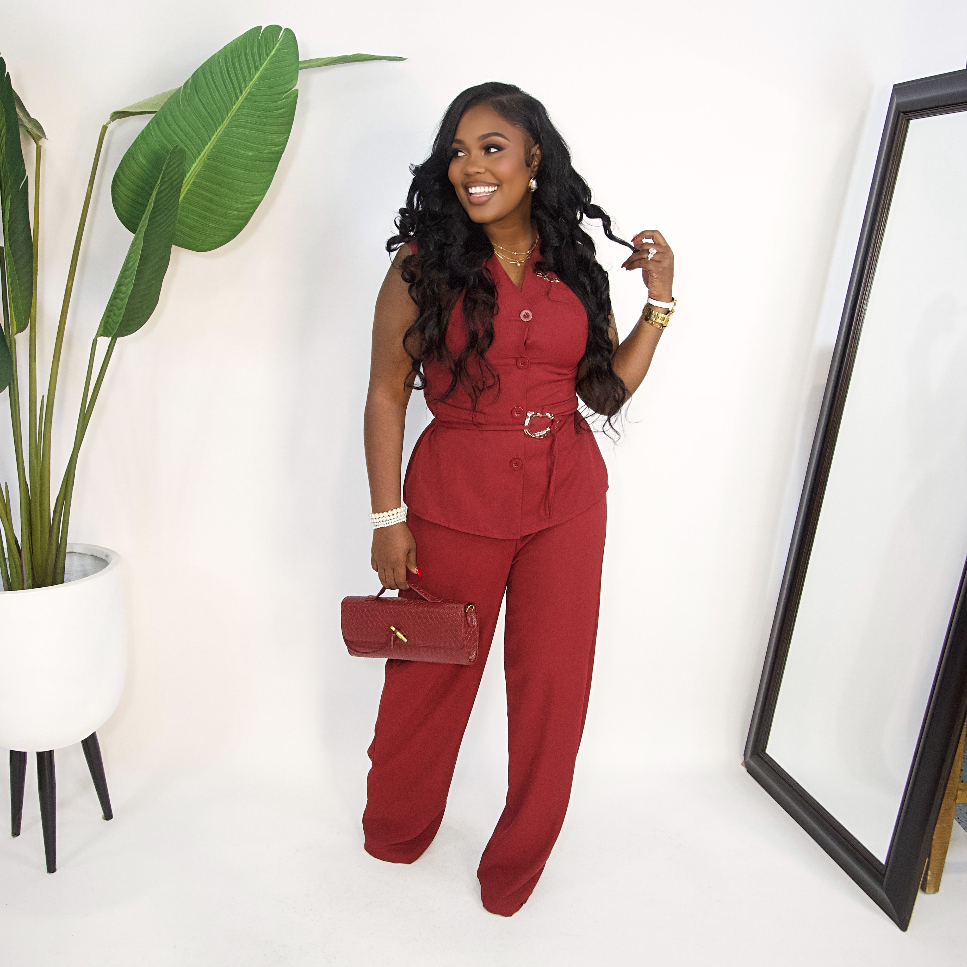 The Chia Chic Belted Pants Set is a polished, feminine two-piece made for effortless elegance.