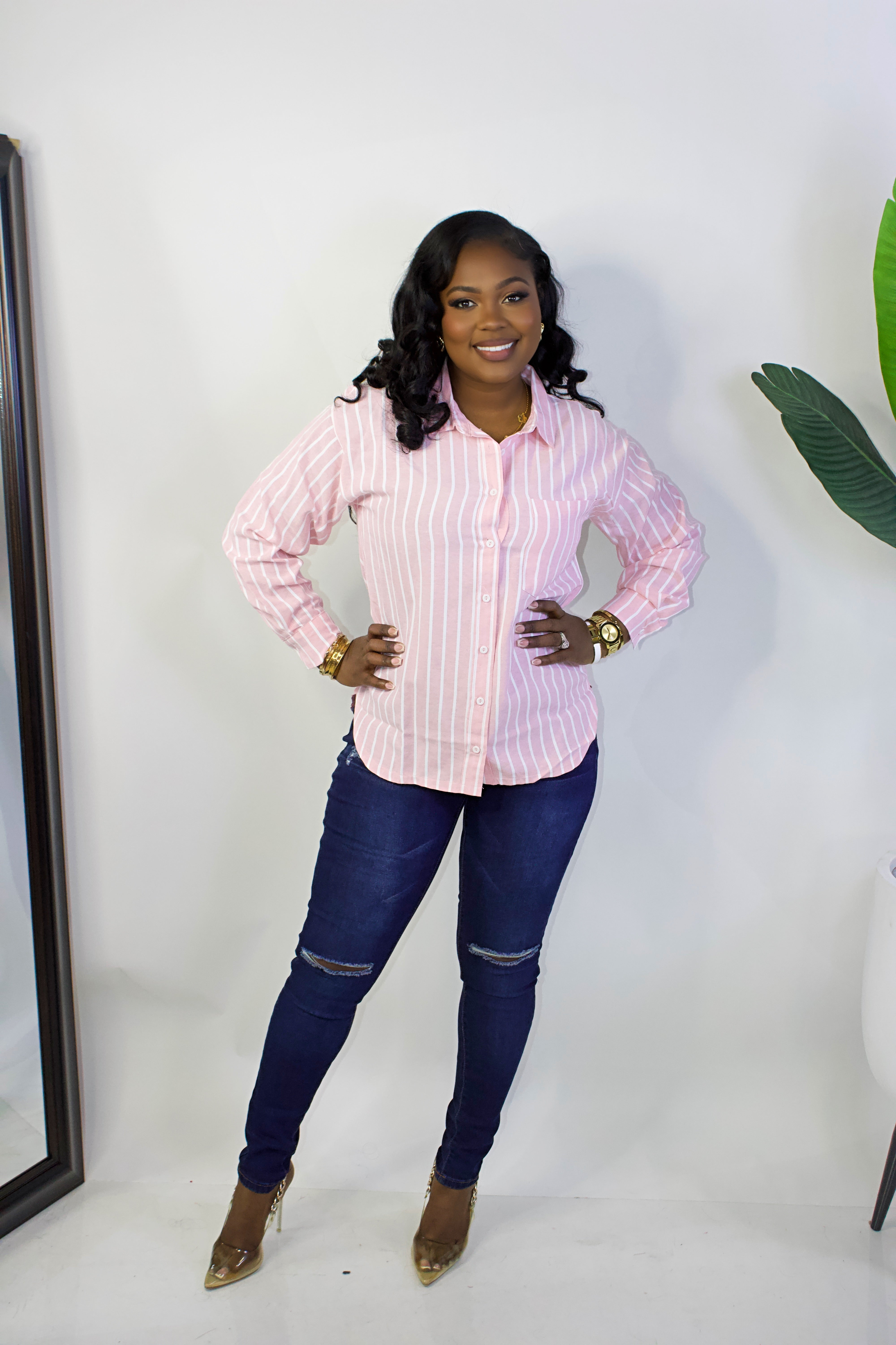 Ella Essential Striped Shirt || PINK
