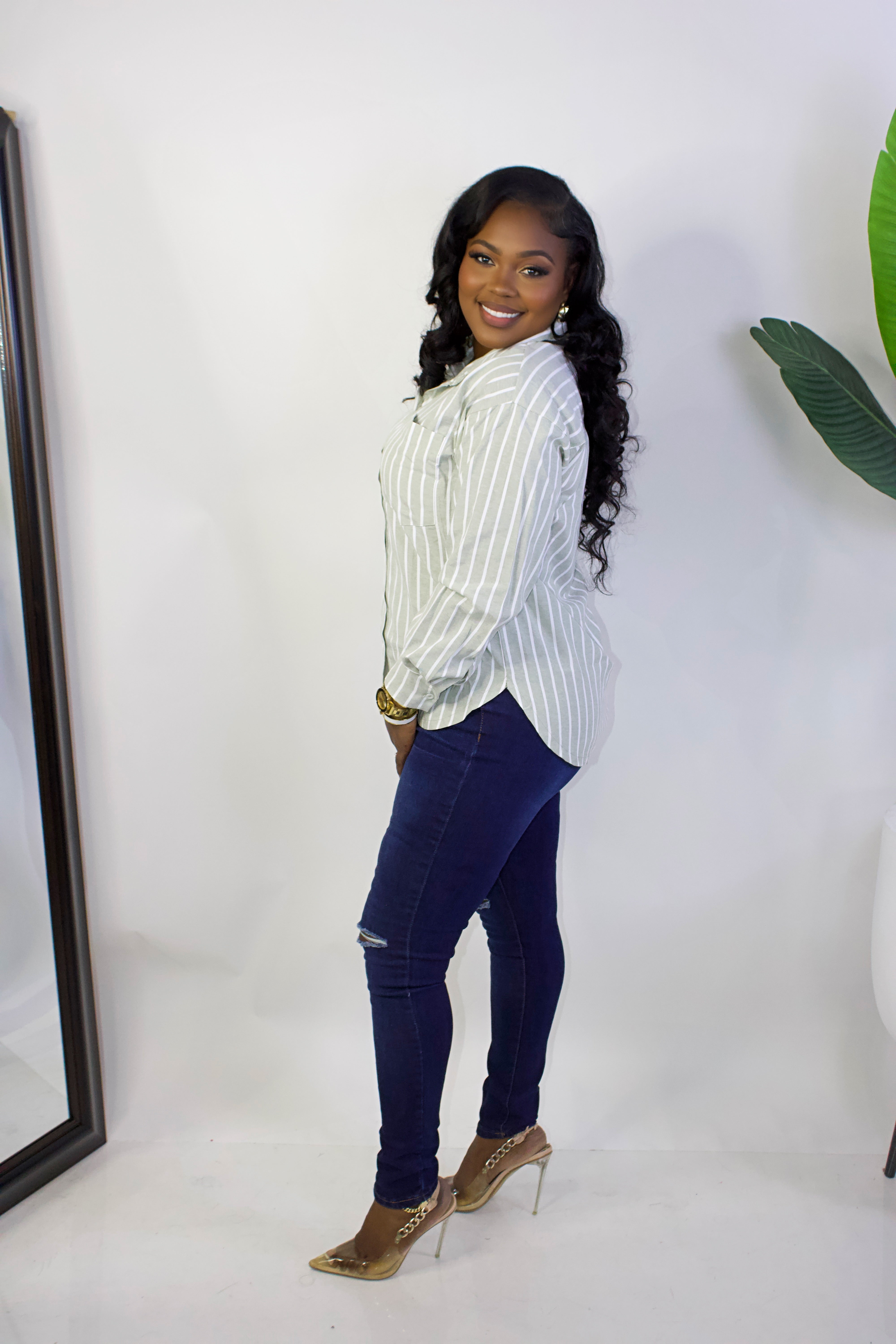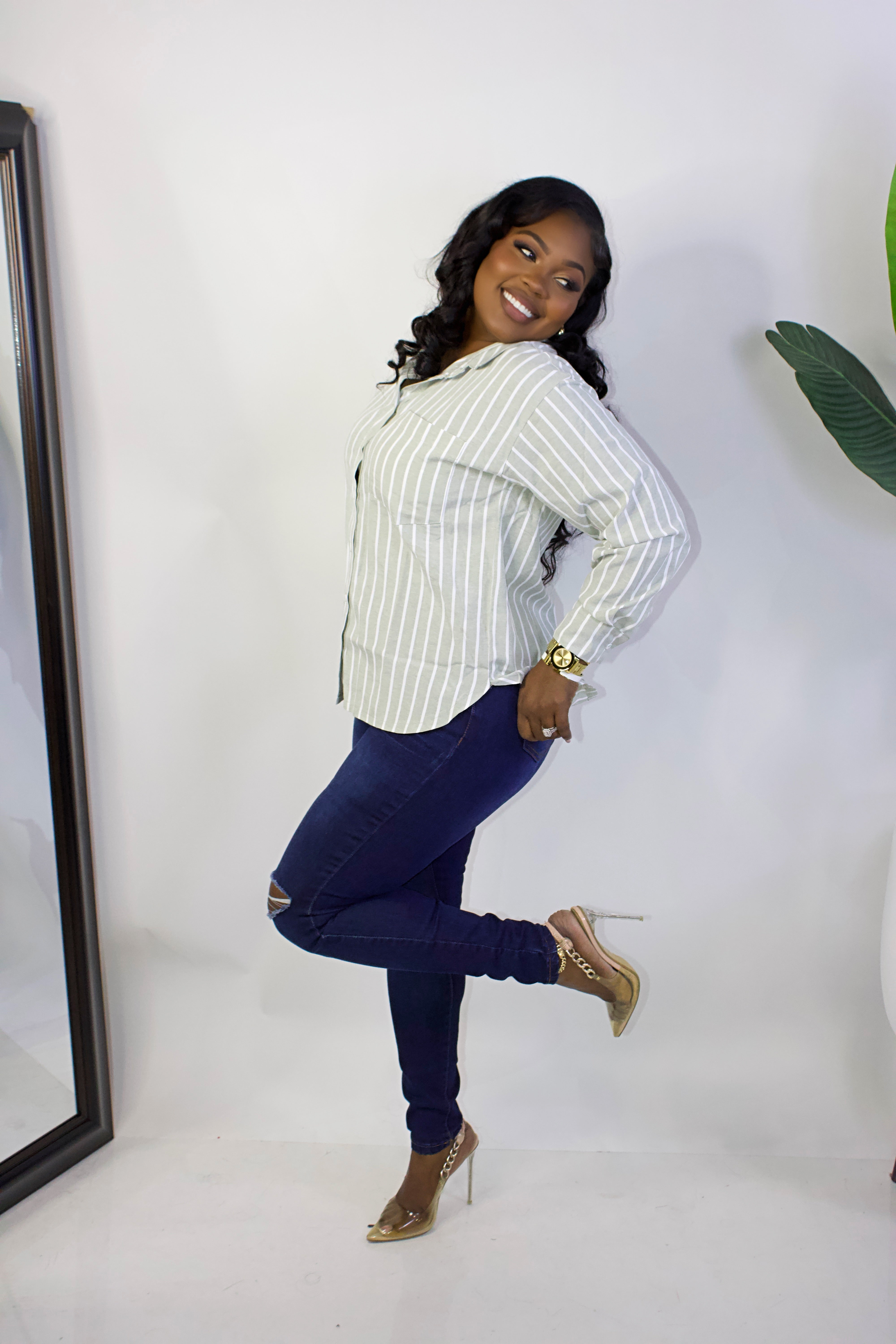 Decrease quantity for Ella Essential Striped Shirt ||SAGE