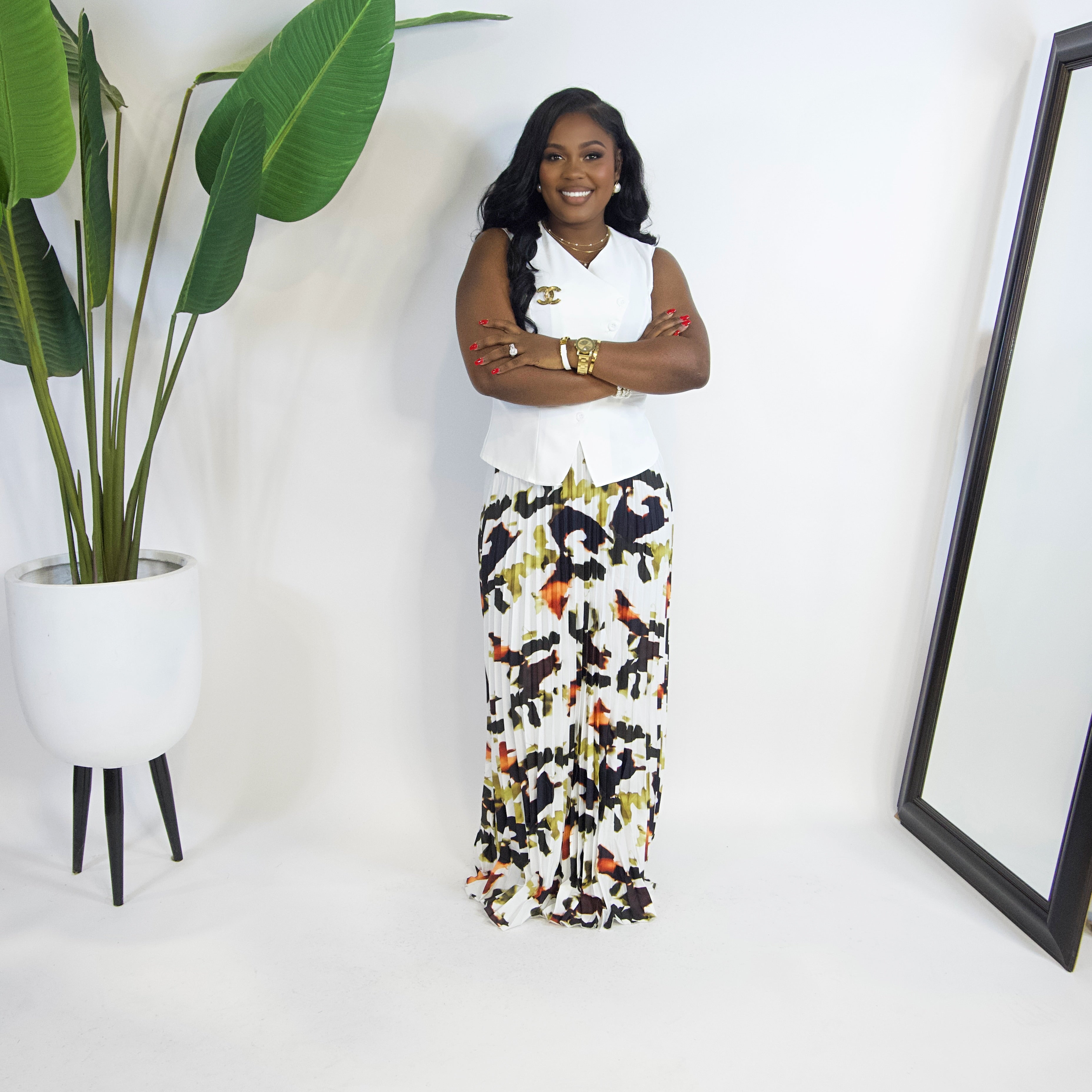 The Lani Pleated Maxi Skirt Set blends soft femininity with clean, tailored structure.
