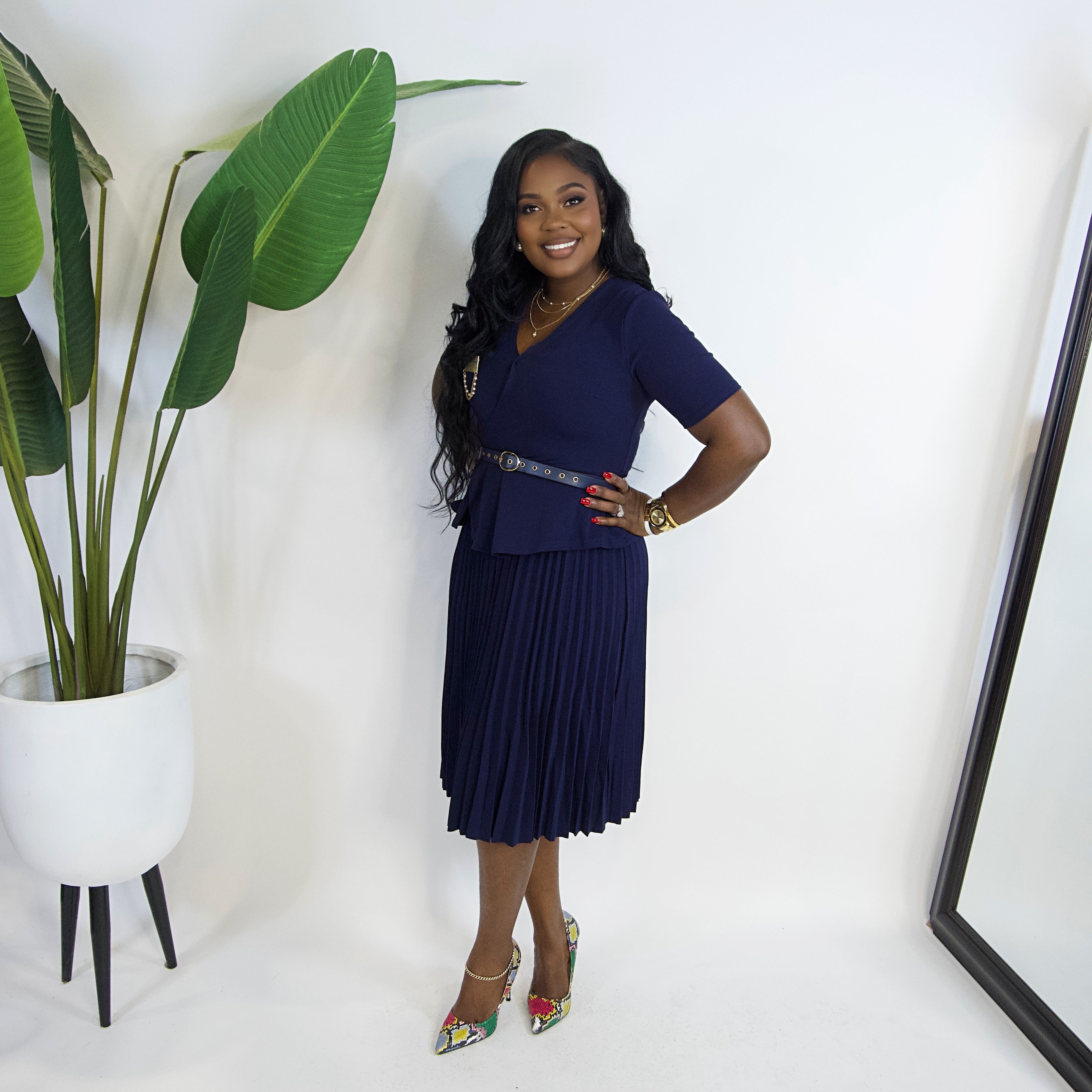Featuring a wrap-style bodice, defined waist with belt, and a softly pleated skirt for elegant movement.