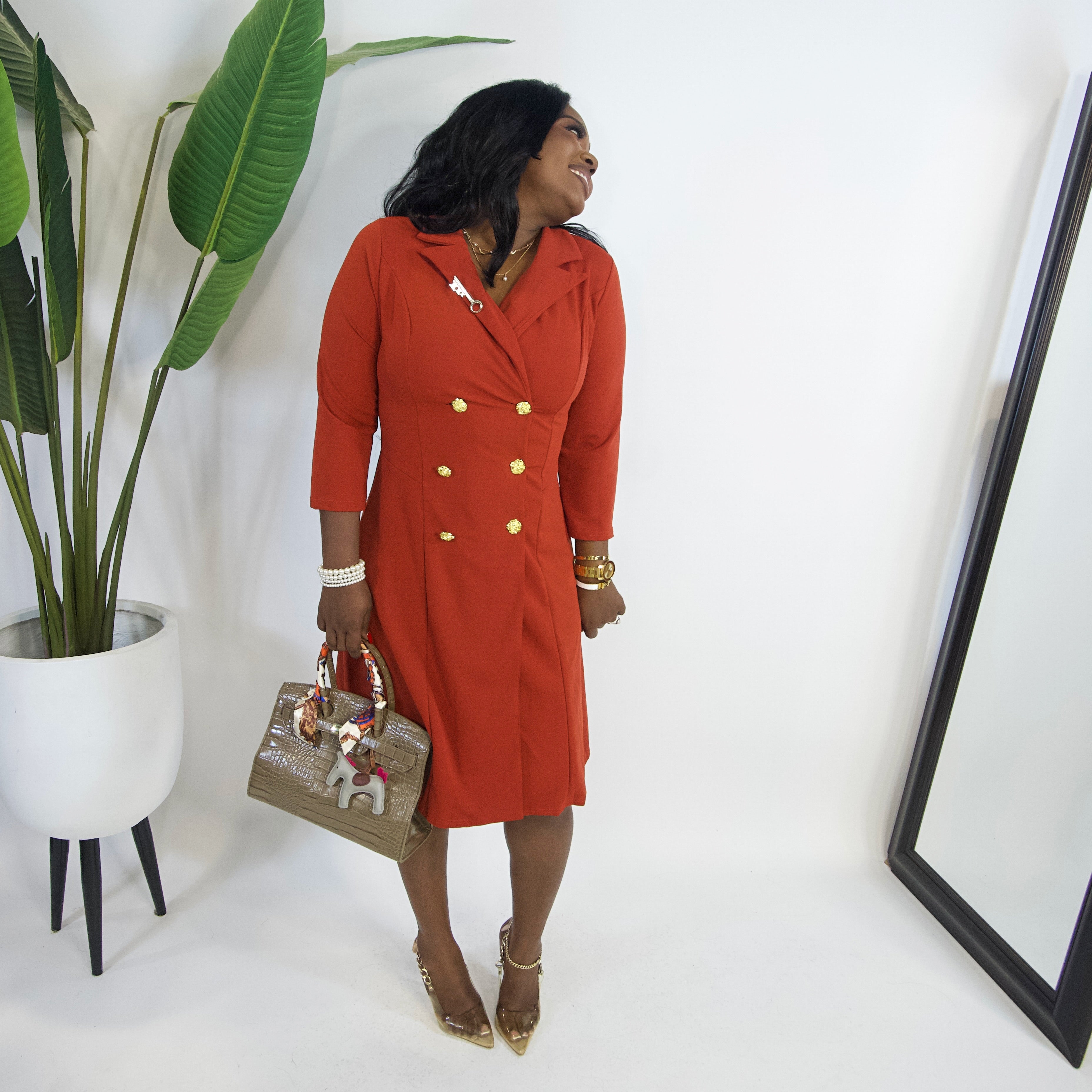 Power Play Blazer Dress||RUST