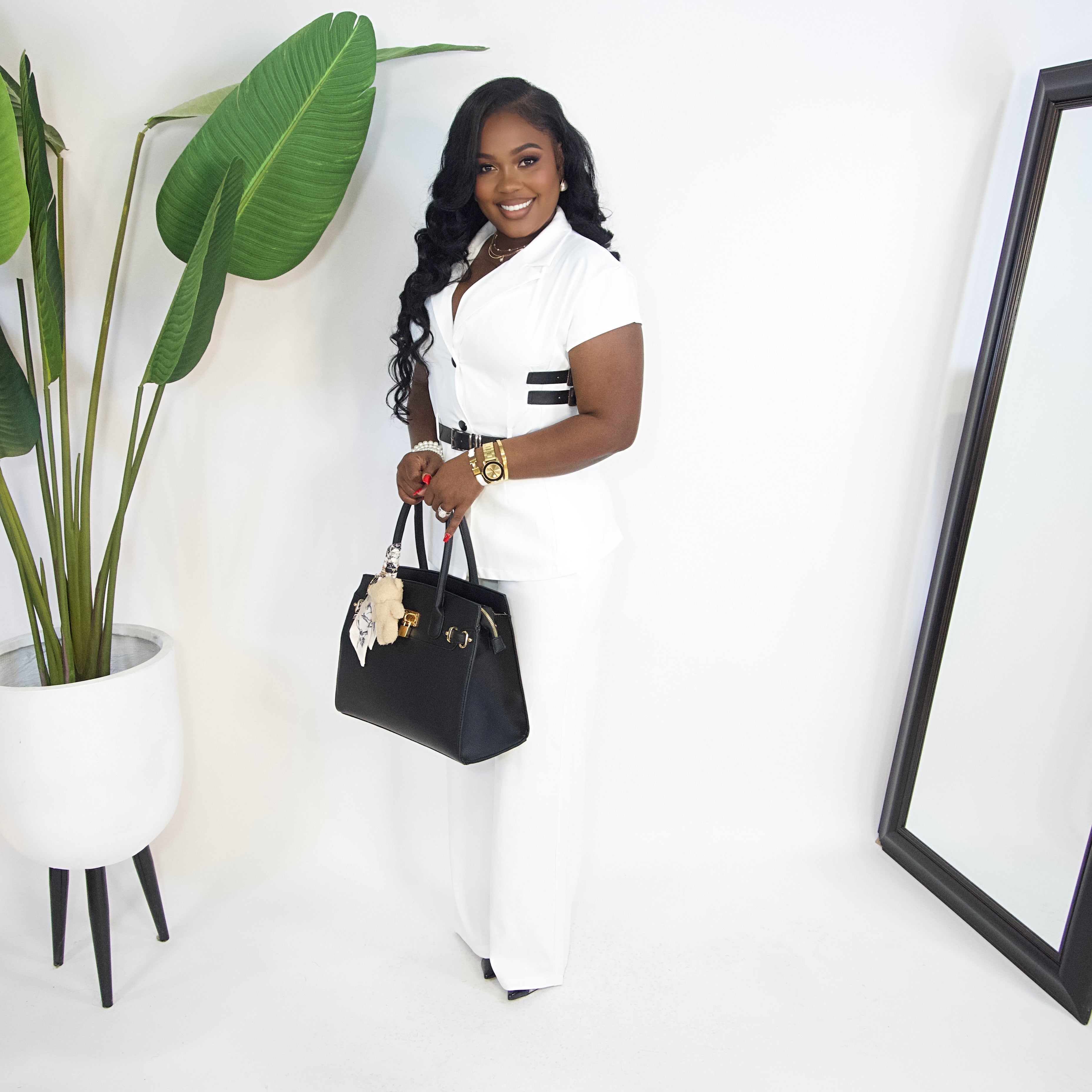 The Zuri Buckle Belted Set blends tailored elegance with bold, modern detailing. The structured top features statement buckle belts that snatch the waist for a polished, elevated silhouette. The  pants include a zipper closure, elastic waistband in the back, and functional pockets for comfort and easy movement. FIT & DETAILS • Pants have zipper closure • Pants have elastic waistband (back) • Pants have pockets • Top has NO stretch • Runs one size small • Garment tags: L, XL, 2XL, 3XL Sold as: M, L, XL, 2XL • Model is wearing size tagged as Large  (sold as Medium) • COLORS MAY VARY SLIGHTLY DUE TO LIGHTING & MONITOR RESOLUTION